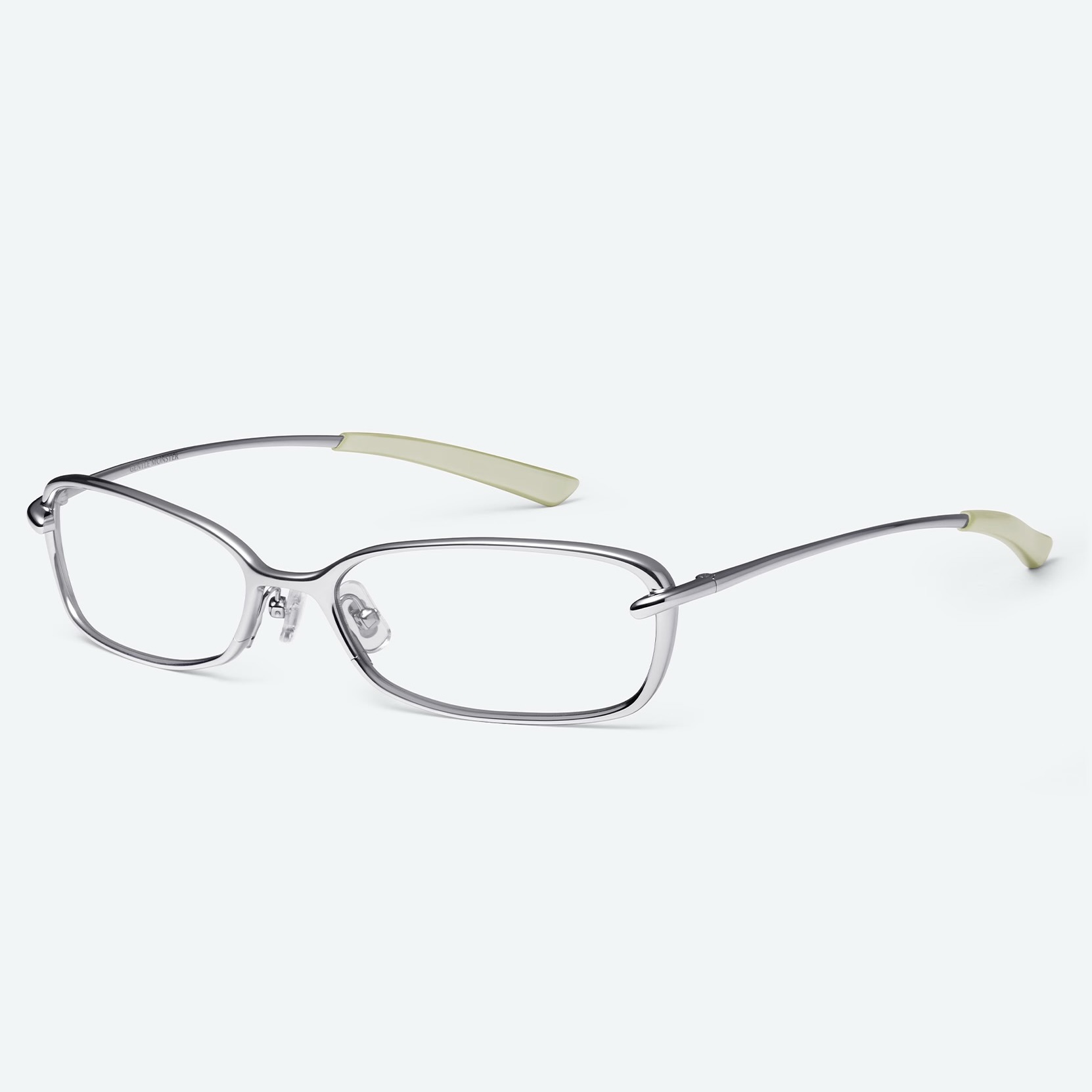 Square Glasses in Glossy Silver Metal
